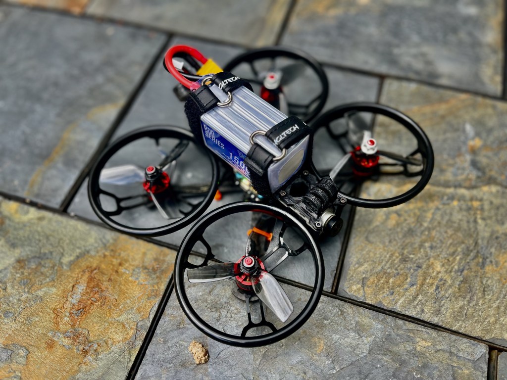 Video-oriented cinewhoop, built for small spaces and indoor applications. Primarily used for indoor tours, and some exterior shots.